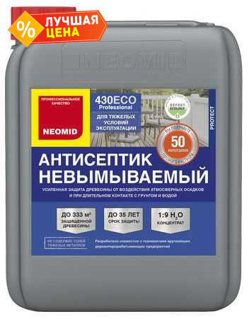NEOMID 430 ECO – консервирующий невымываемый антисептик для наружных и внутренних работ.