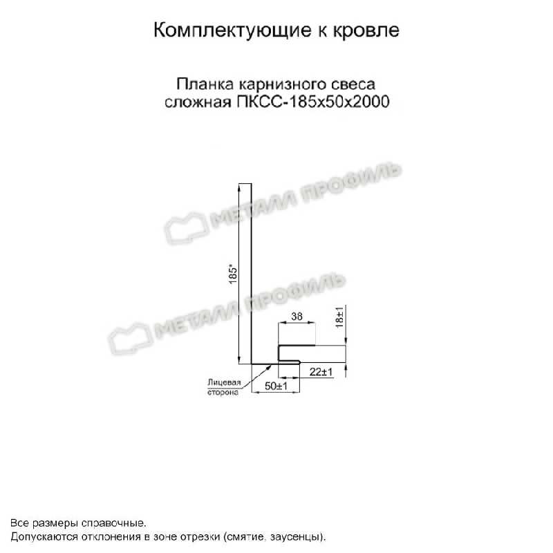 Планка карнизного свеса сложная 185х50х2000 (ПЭ-01-6005-0.45)