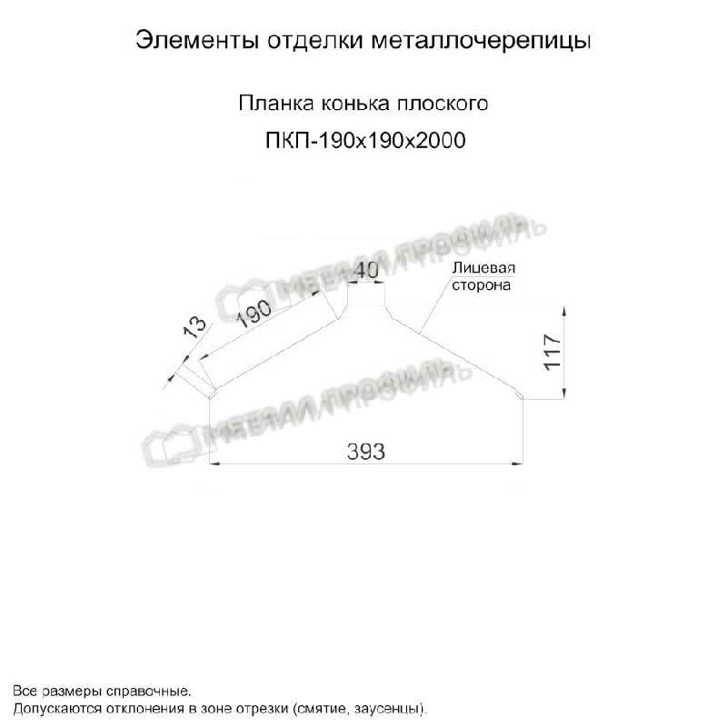 Планка конька плоского 190х190х2000 (ПЭ-01-1035-0.45)