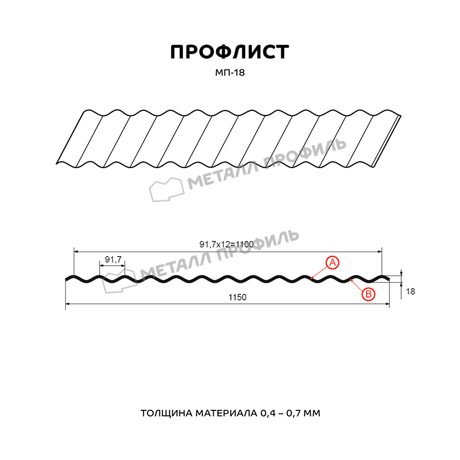 Профиль МП-18 имеет толщину 0,45 мм, что обеспечивает прочность и долговечность конструкции. Он изготовлен из высококачественной стали и покрыт специальным полимерным покрытием VikingMP®, которое защищает от коррозии и внешних воздействий.