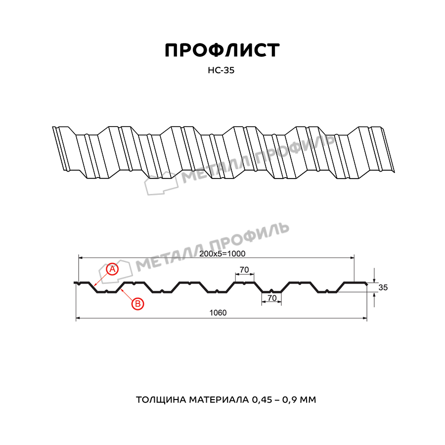 Профиль НС-35 имеет толщину 0,5 мм, что обеспечивает ему прочность и долговечность. Он изготовлен из металла высокого качества, что делает его устойчивым к коррозии и воздействию атмосферных условий.