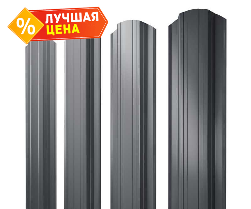 Штакетник Прямоугольный фигурный Grand Line 0,5 Quarzit RAL7024 Мокрый Асфальт