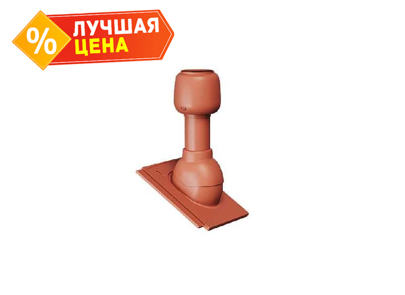 Скатный дефлектор для плоской черепицы: проходная плоская черепица, неизолированный вентиляционный выход с колпаком (h 500 мм,d 110 мм), крепежные элементы_Тевива, Эво,Ревива_красный