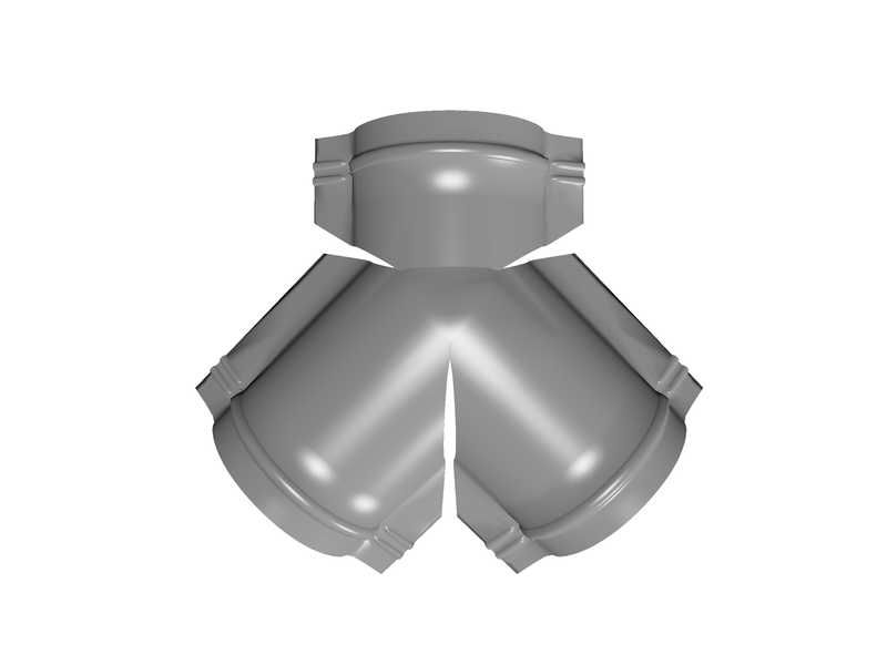 Тройник Y малого конька полукруглого используется для соединения трех полукруглых коньков в одной точке.