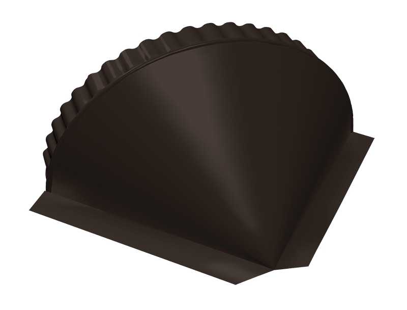 При монтаже полукруглого конька для эстетики необходимы заглушки на торцах и сопряжениях конька и хребта (торцевая) и окончаниях хребтов (конусная).
